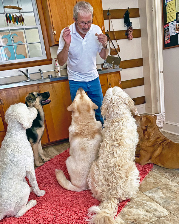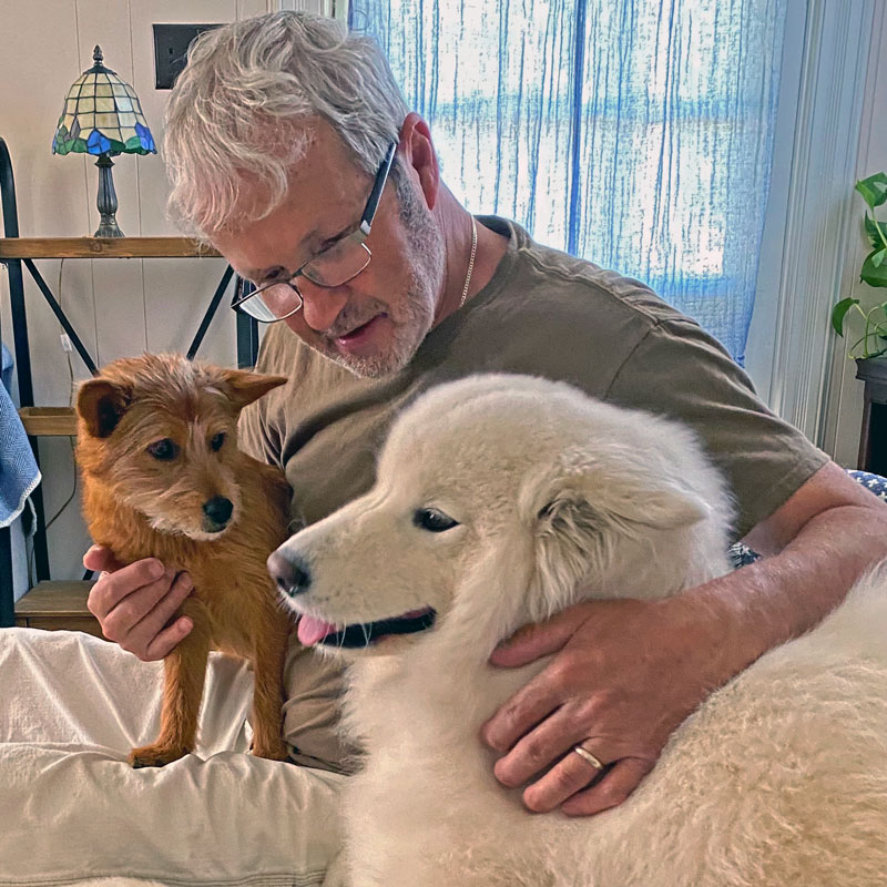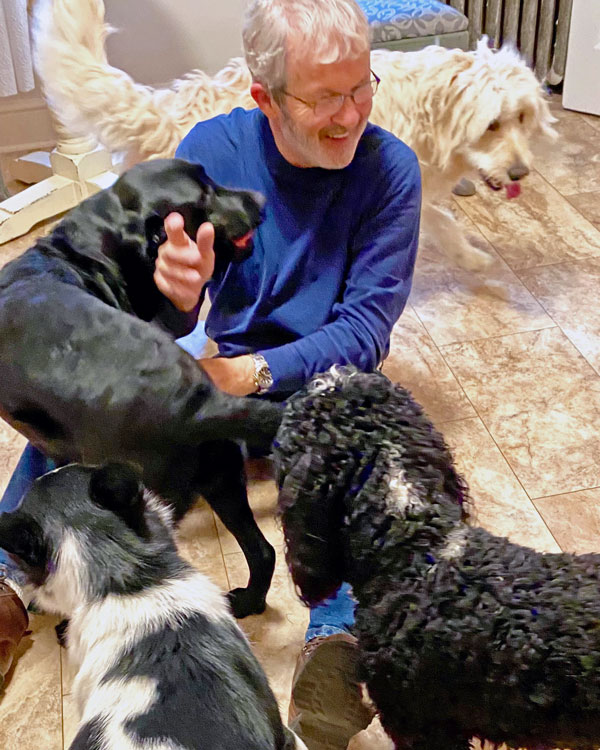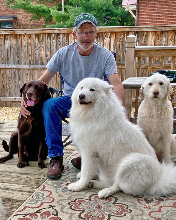 Frank retired from Lockheed Martin in Denver and relocated to Northern Virginia to be with his son and grandchildren. His retirement plan was to take care of dogs. Soon after Frank moved here, the man who was nicknamed “dog boy” when he was a kid met a dog girl. We were married in 2020.